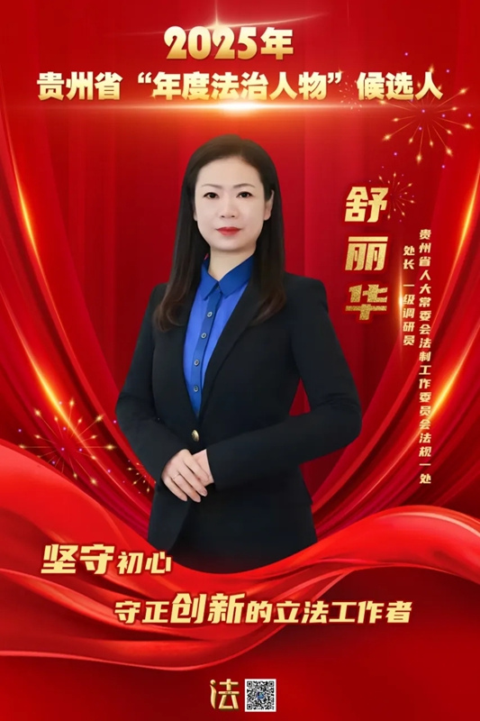 舒丽华,现任贵州省常委会法制工做委员会律例一处处长、一级调研员,自2001年到省常委会机关工做以来,扎根处所立法一线二十四载,苦守初心,强化履职担任,科学立法、立法、依法立法,积极环绕贵州经济社会成长的沉点范畴、严沉开展立法工做,参取制定、点窜处所性律例一百余件,正在推进贵州经济社会高质量成长中贡献了力量。她先后多次荣获优良员、优良公事员,记三等功;撰写的《处所立法权限研究》荣获庆贺全国成立60周年征文理论研究类二等。